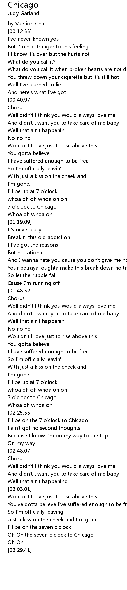 [03:18.74] Oh Oh the seven o'clock to Chicago