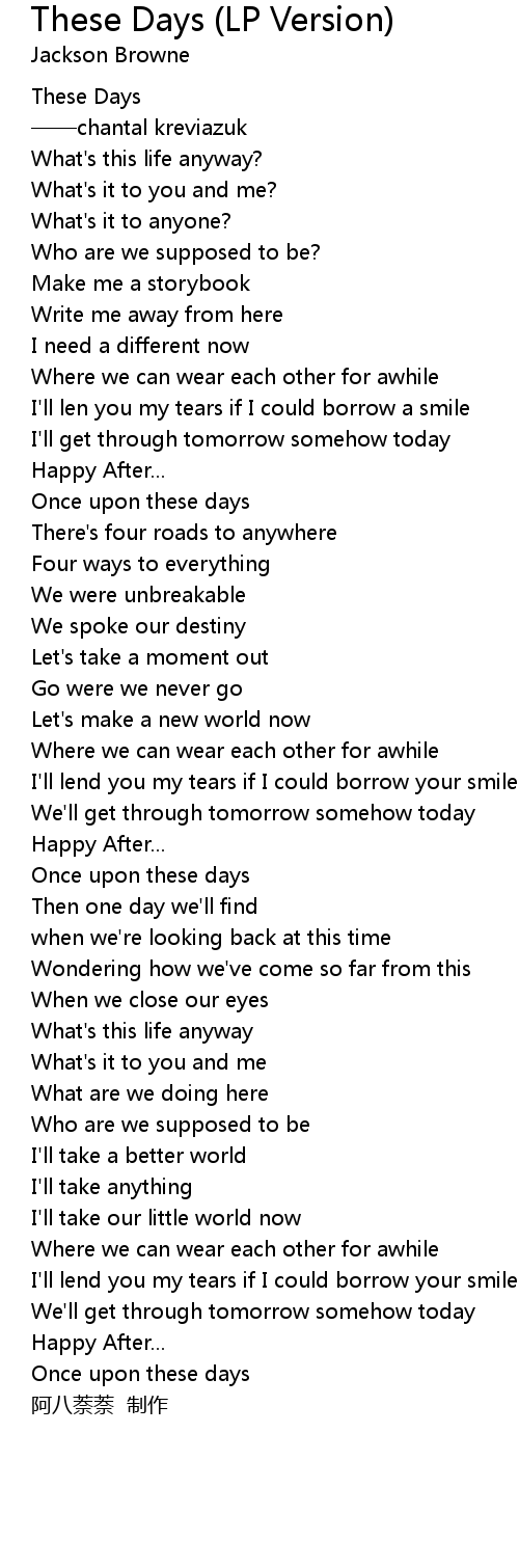 | 歌曲 | These Days (LP Version) |