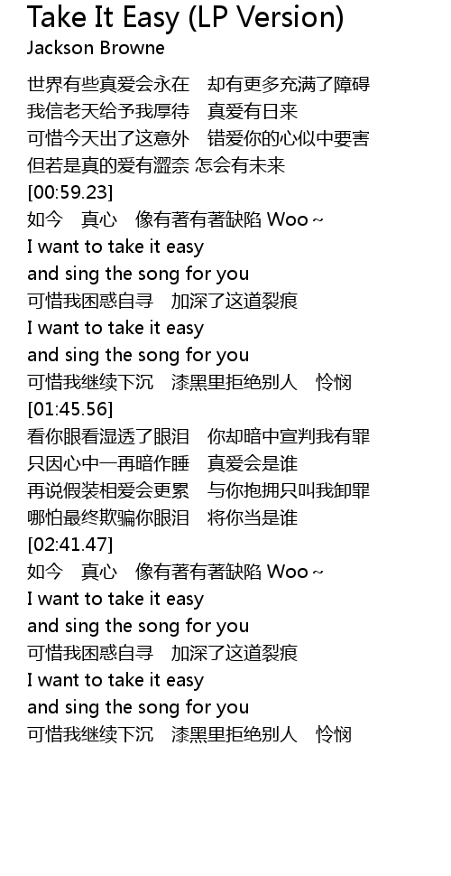 | 歌曲 | Take It Easy (LP Version) |