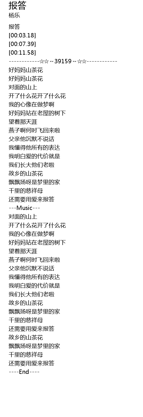 | [03:41.61] | 还需要用爱来报答 |