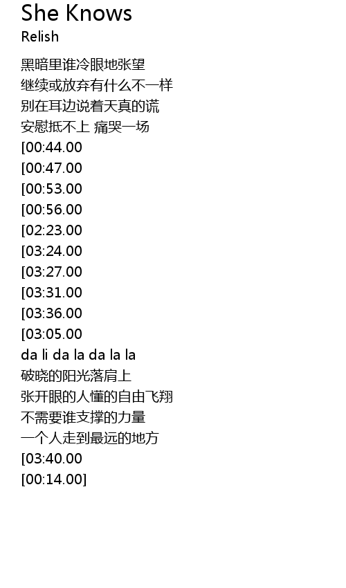 | [03:58.00][03:40.00] | she knows |