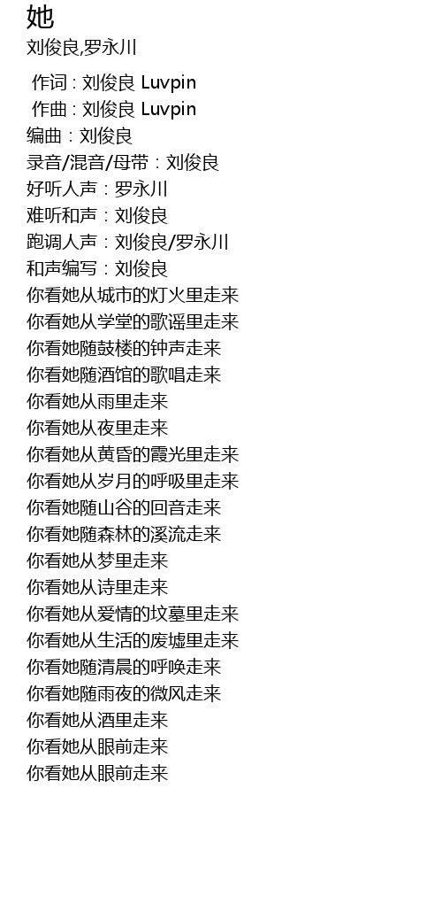 | [00:08.910] | 录音/混音/母带:刘俊良 |