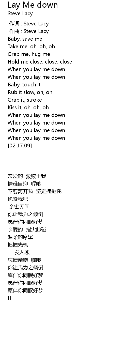 | [02:13.55] | When you lay me down |