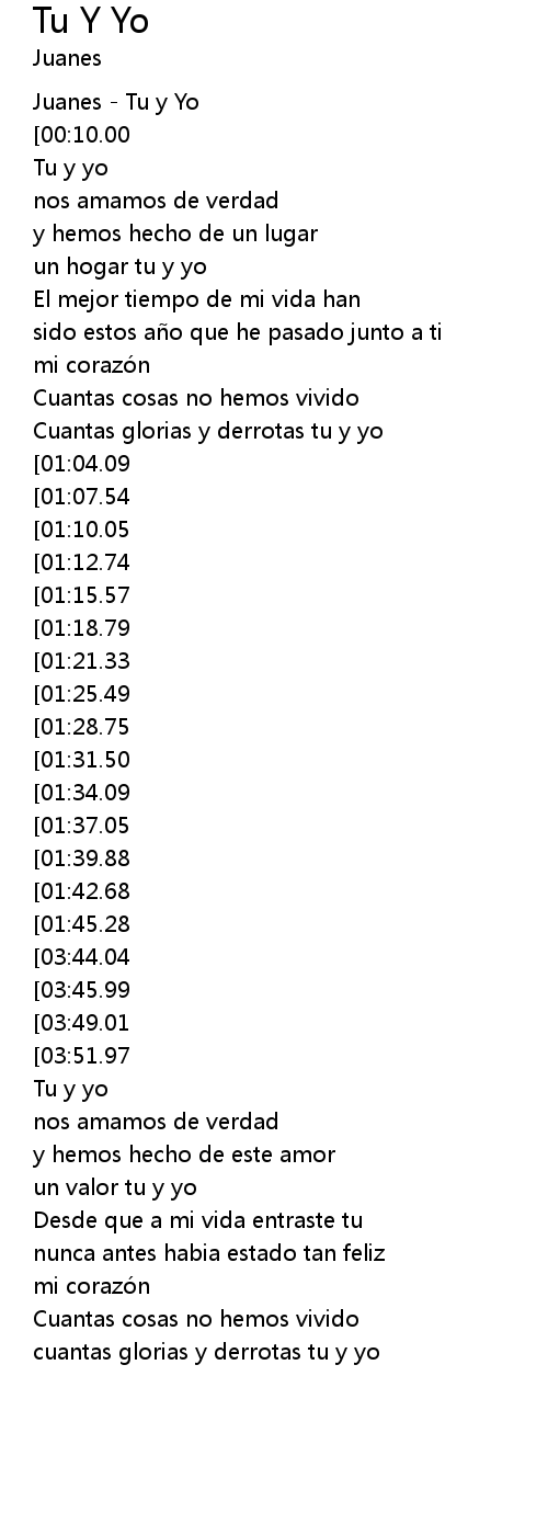 | [00:00.00] | Juanes Tu y Yo |