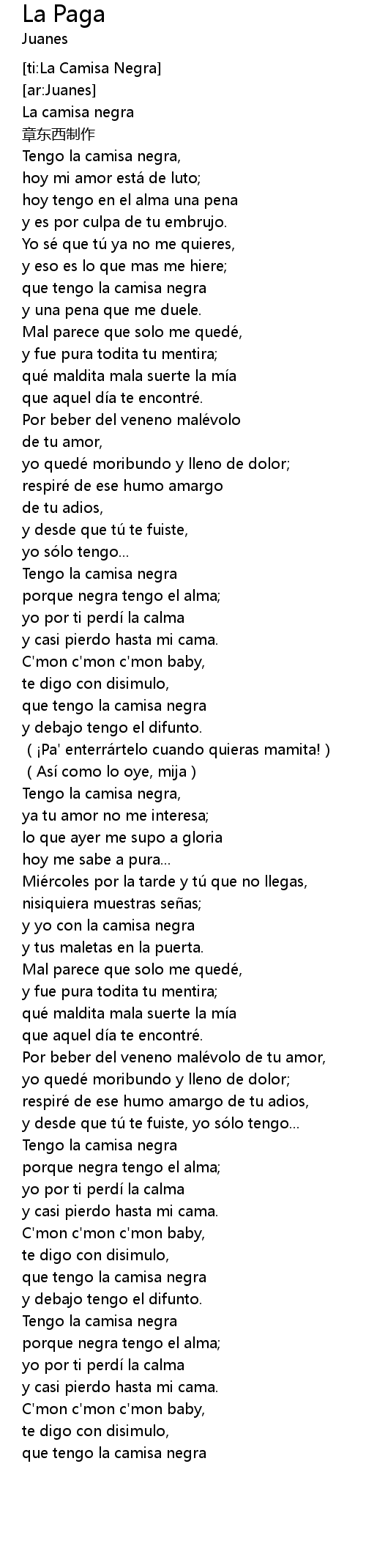 | [ti:La Camisa Negra] | |