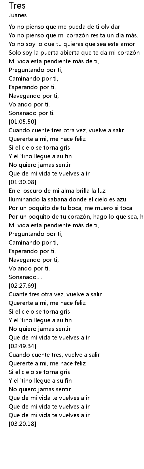 | [00:32.51] | Yo no pienso que mi corazo n resita un di a ma s. |