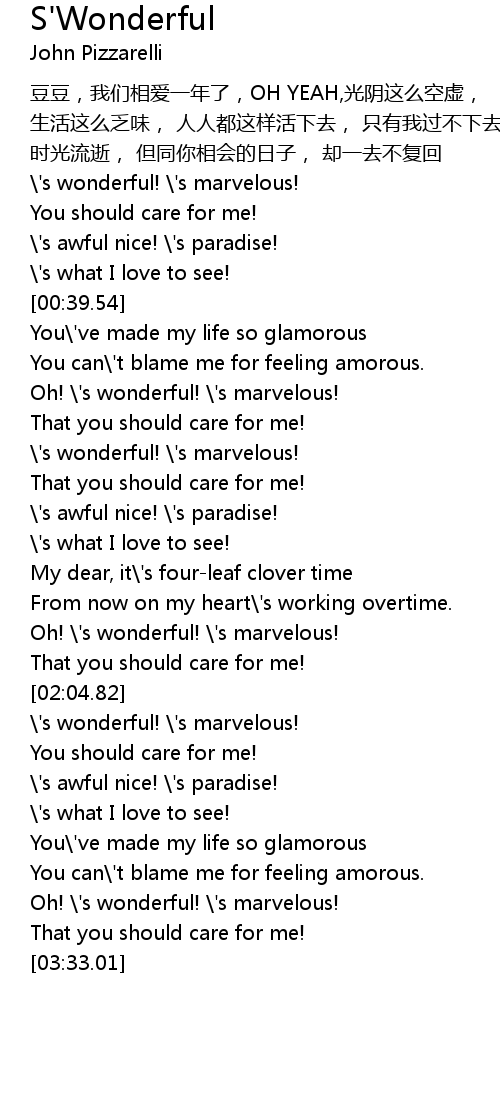 | [03:19.16] | Oh! ' s wonderful! ' s marvelous! |