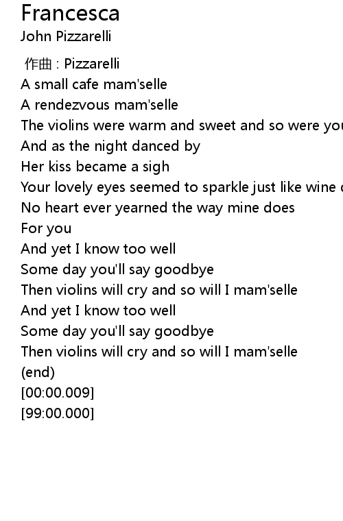 | [01:10.68] | Then violins will cry and so will I mam'selle |