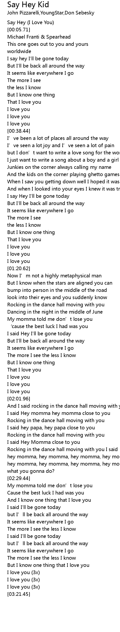 | [00:01.85] | Say Hey (I Love You) |