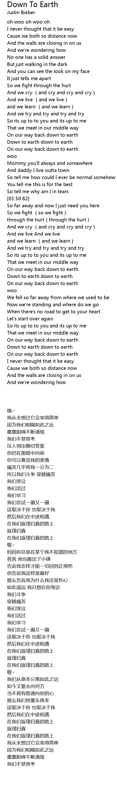 | 歌曲 | Down To Earth |