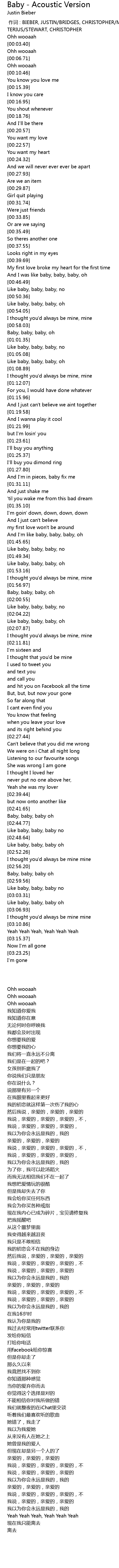 | [00:00.00] | zuo ci : BIEBER, JUSTIN BRIDGES, CHRISTOPHER MILLIAN, C NASH, TERIUS STEWART, CHRISTOPHER |