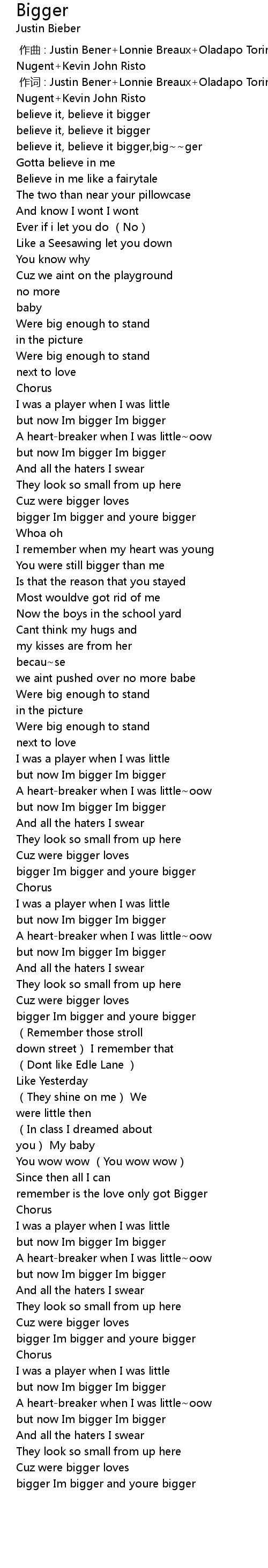 | [00:51.81] | bigger Im bigger and youre bigger |
