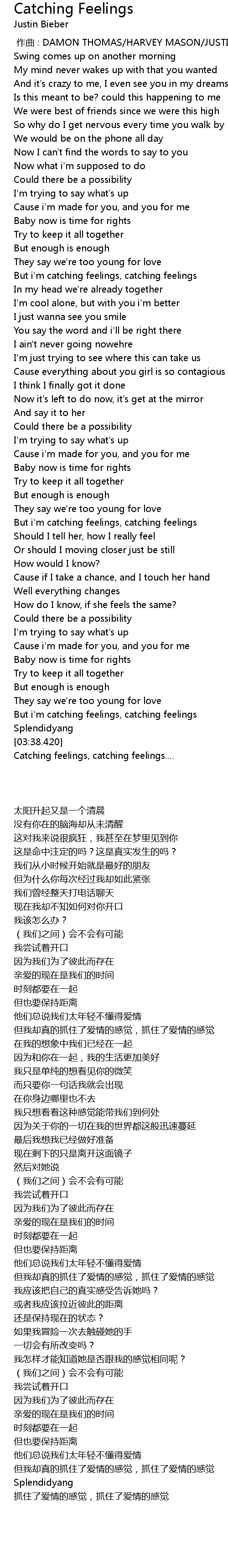 | [03:24.250] | But i' m catching feelings, catching feelings |