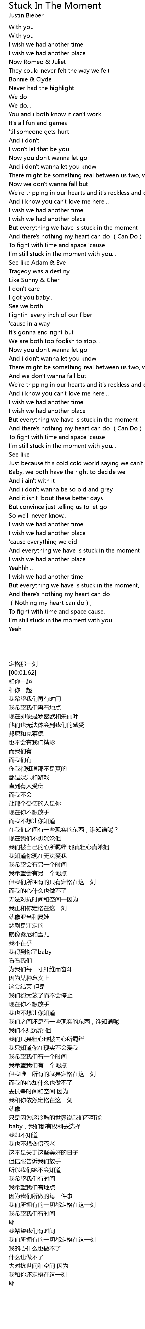 | [01:21.16] | I'm still stuck in the moment with you… |