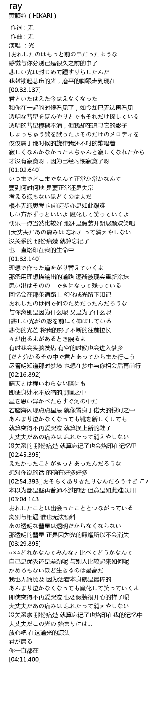 | [00:17.630] | 演唱 :光 |