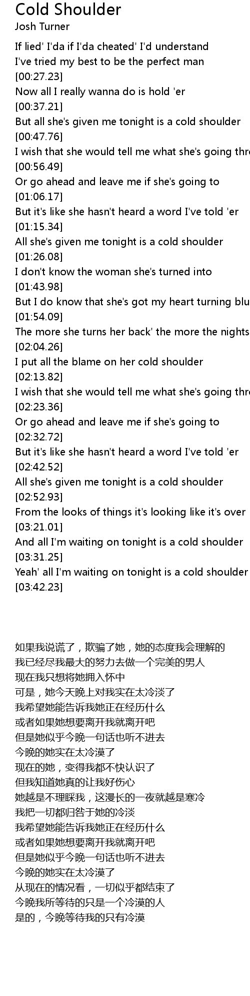 Yeah' all I'm waiting on tonight is a cold shoulder |
