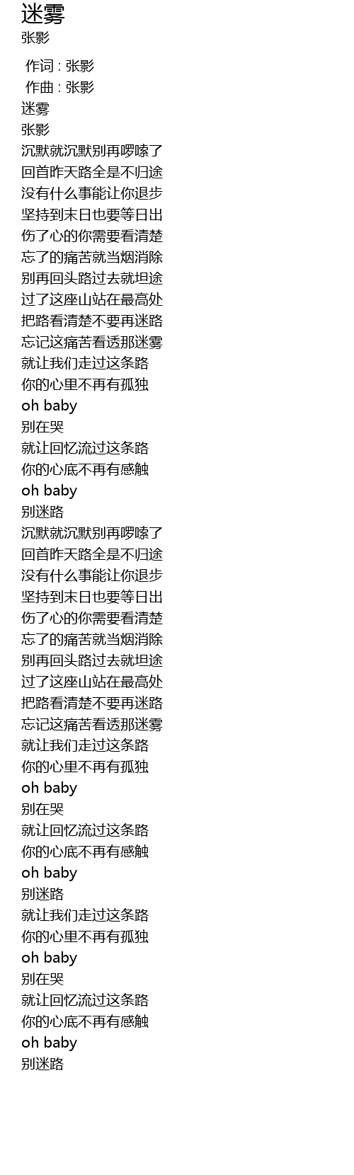 | [00:00.000] | 作词 : 张影 |