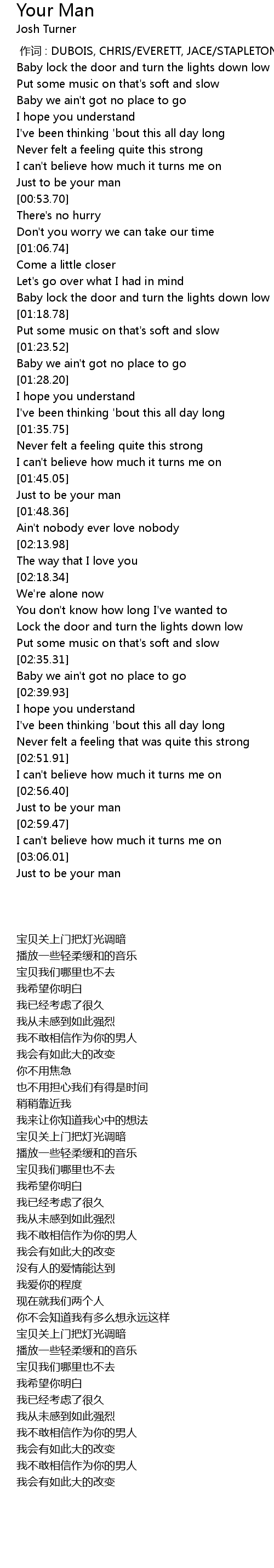 | [00:50.95] | Just to be your man |