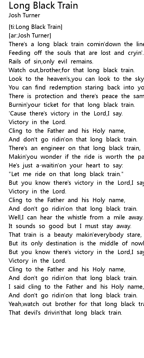 And don't go ridin'on that long black train. |