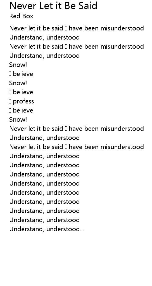 | Never let it be said I have been misunderstood | |