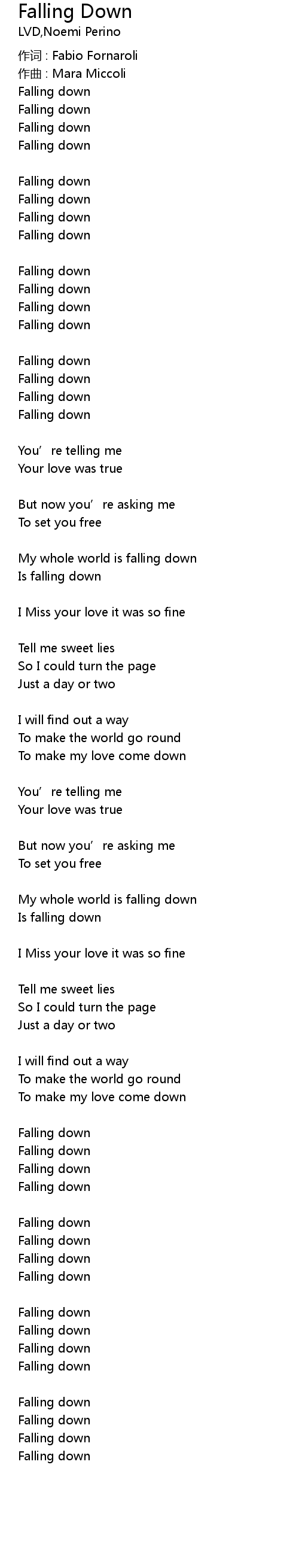 | 歌曲 | Falling Down |