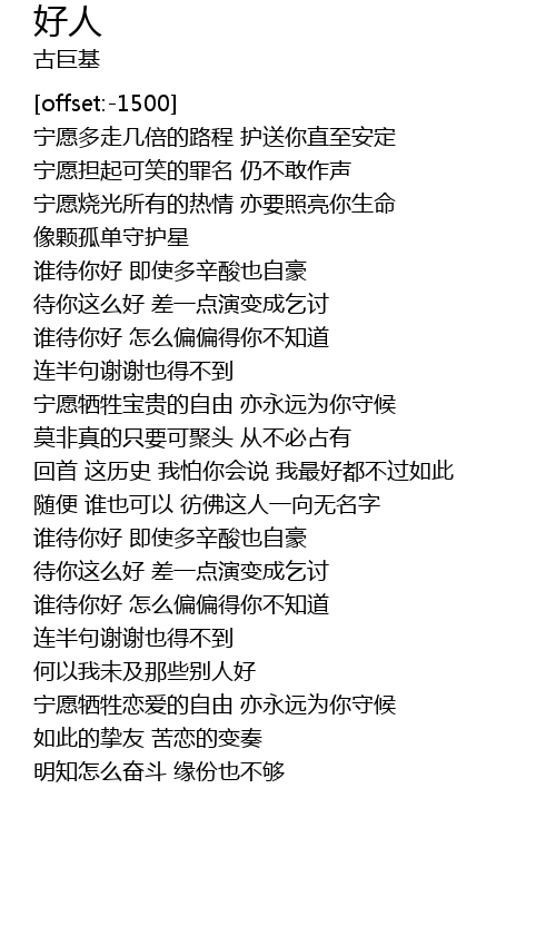 | [00:59.40] | 待你这么好 差一点演变成乞讨 |