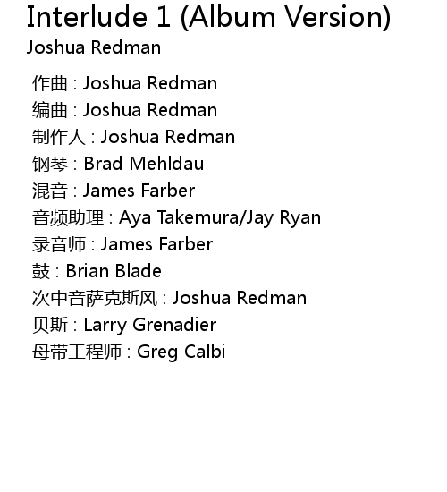 | [00:00.000] | biān qǔ : Joshua Redman |