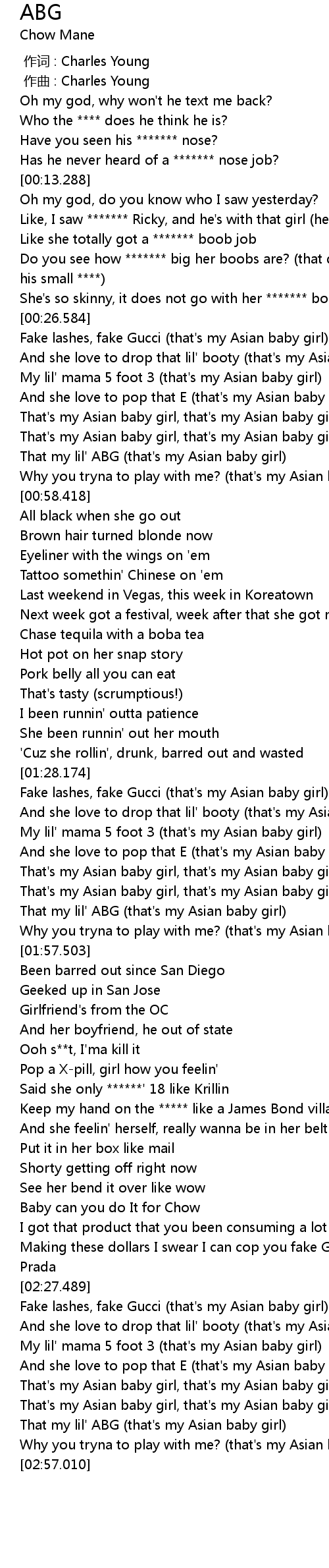 | [00:51.043] | That my lil' ABG (that's my Asian baby girl) |