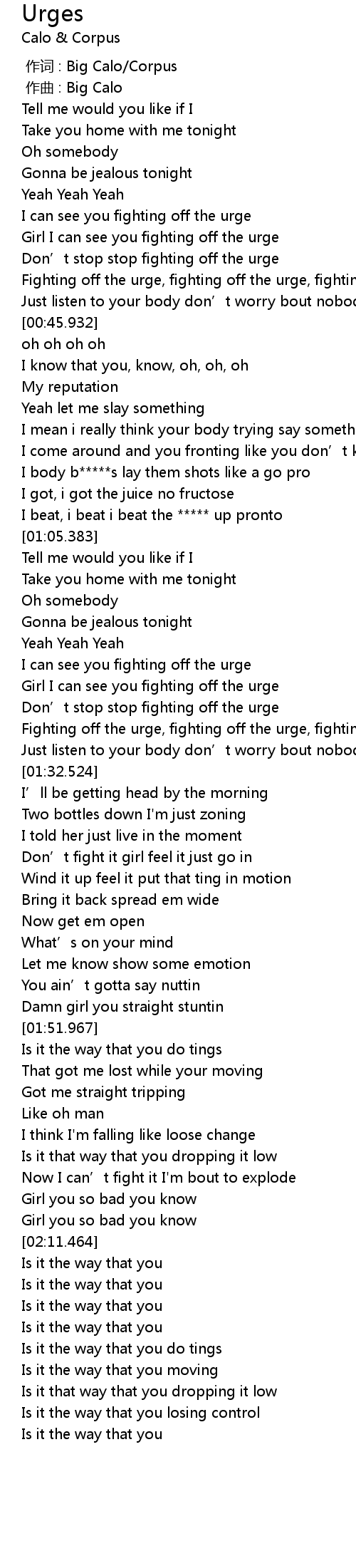| [01:24.714] | Fighting off the urge, fighting off the urge, fighting off the urge |