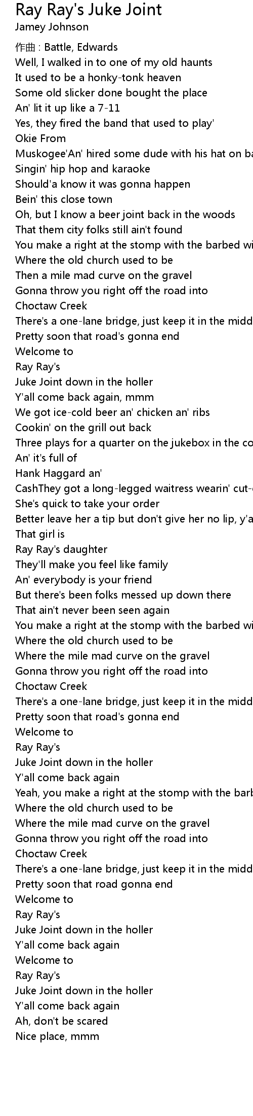 | 歌曲 | Ray Ray's Juke Joint |