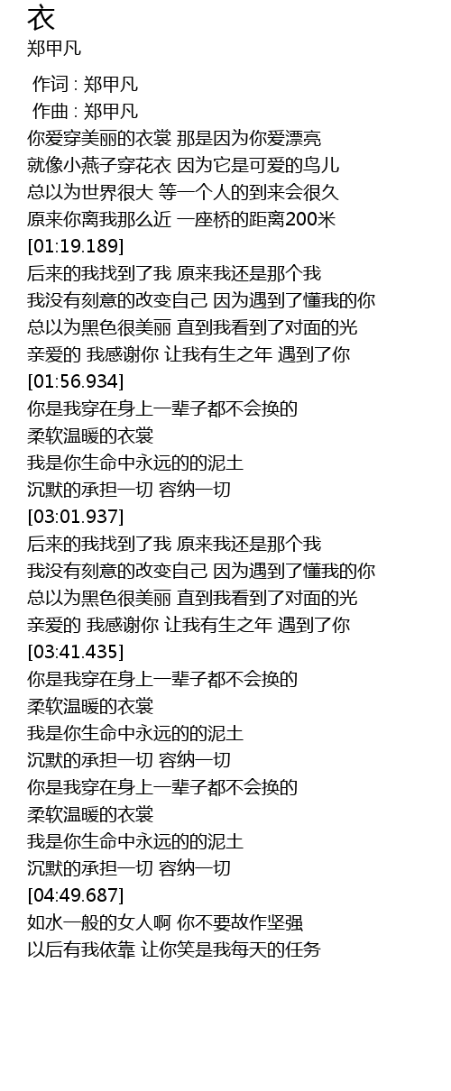 | [03:47.190] | 你是我穿在身上一辈子都不会换的 |