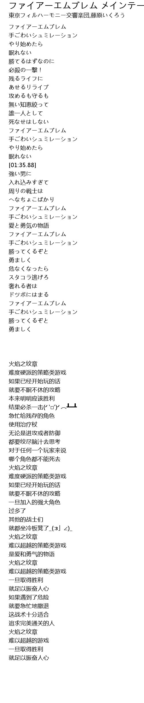 | 歌曲 | ファイアーエムブレム メインテーマ オペラ |
