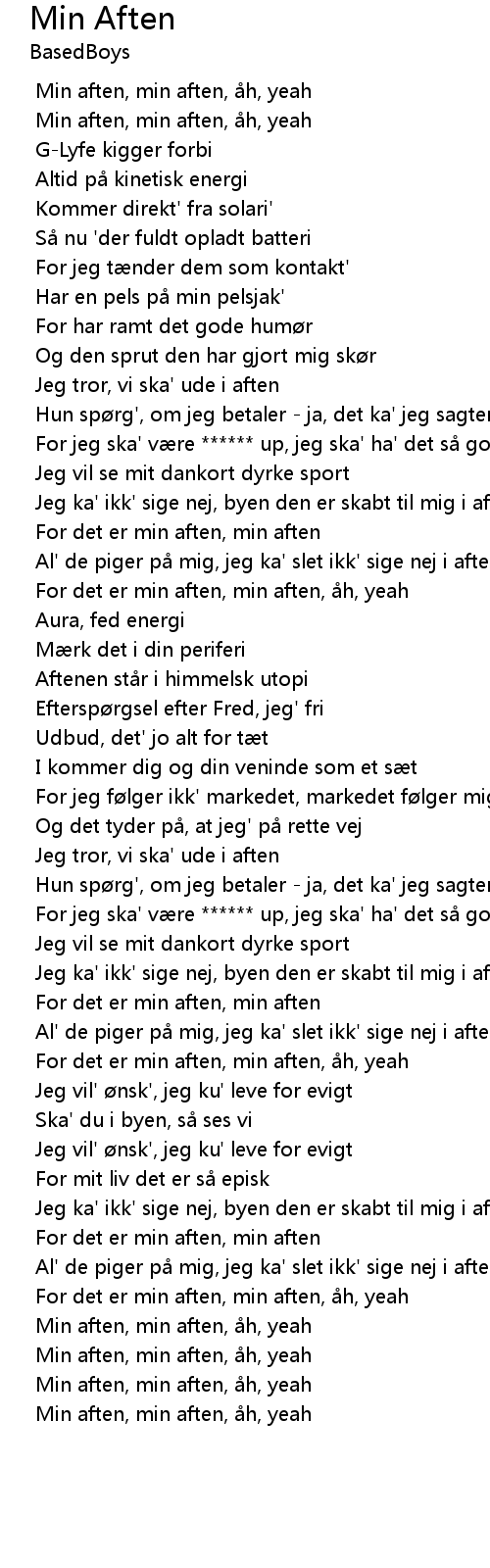 | [00:06.136] | Min aften, min aften, åh, yeah |