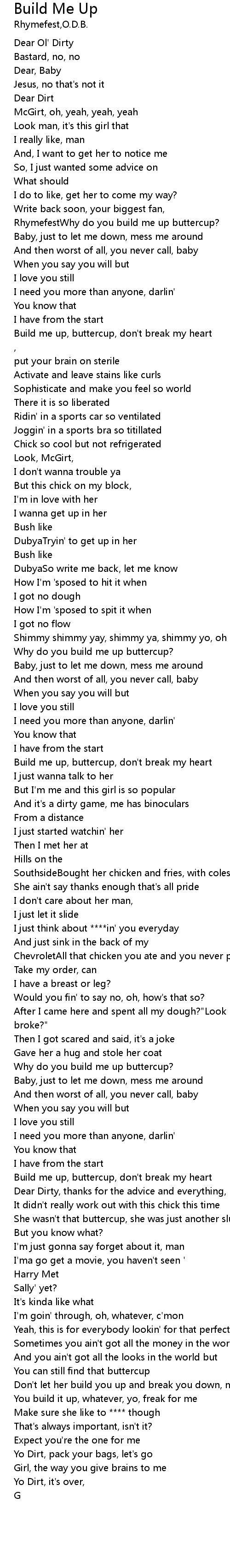 | RhymefestWhy do you build me up buttercup? | |