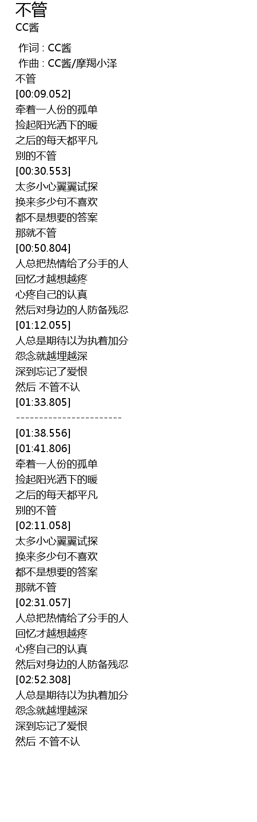 | [00:01.000] | zuò qǔ : CC jiàng mó jié xiǎo zé |