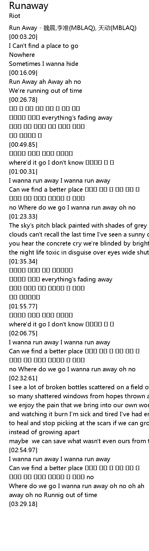 | [00:00.82] | Run Away wei chen, li zhun MBLAQ, tian dong MBLAQ |