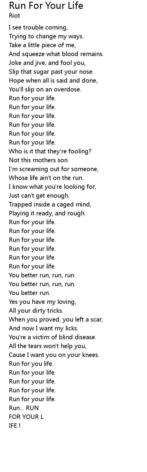Run For Your Life 歌词