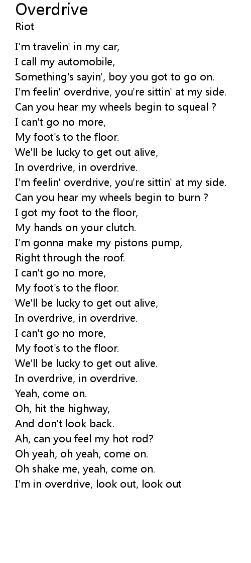 | I'm feelin' overdrive, you're sittin' at my side. | |