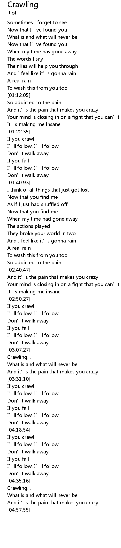 | [03:25.71] | And it’s the pain that makes you crazy |