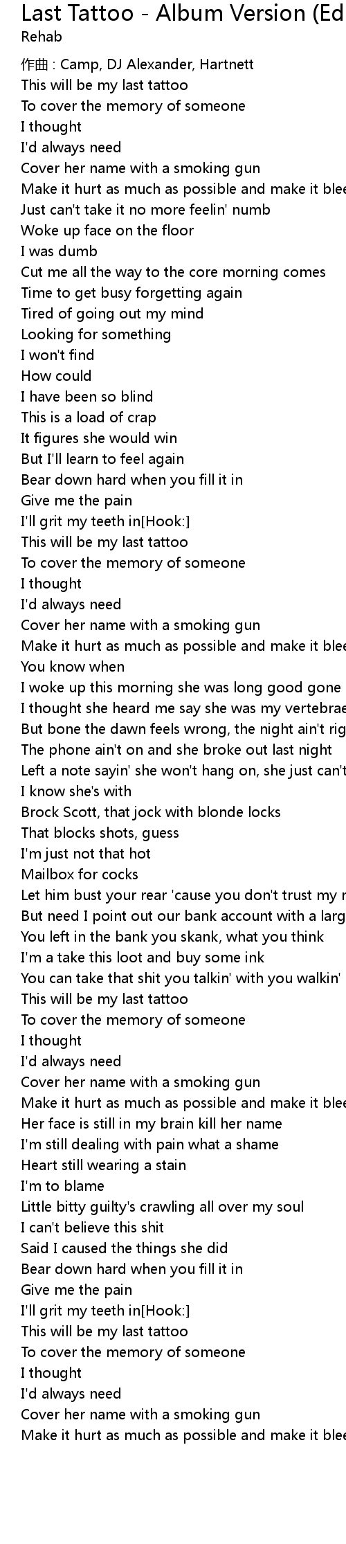 | 歌曲 | Last Tattoo - Album Version (Edited) |