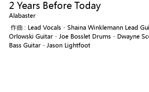 | [00:00.000] | 作曲 : Lead Vocals - Shaina Winklemann Lead Guitar & Lyrics - Kate Orlowski Guitar - Joe Bosslet Drums - Dwayne Scott Key & Vocals - Stacy Meyer Bass Guitar - Jason Lightfoot |