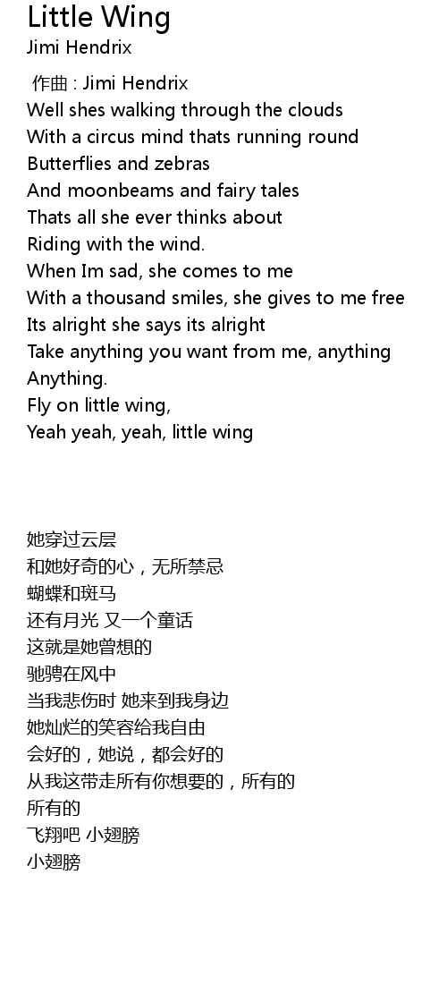| [02:13.61] | Yeah yeah, yeah, little wing |