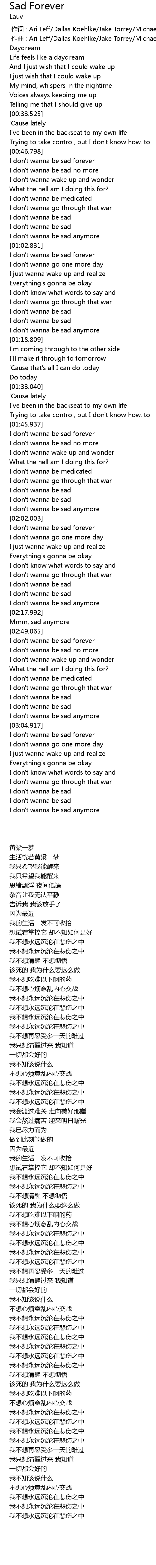 | [03:01.200] | 我不想永远沉沦在悲伤之中 |