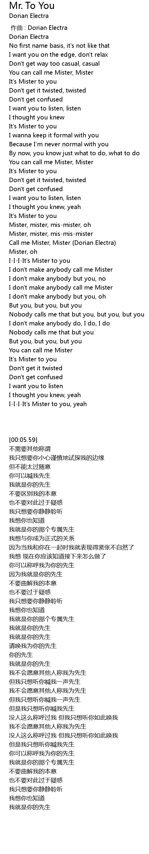 | [01:47.61] | 但是我只想听你喊我先生 |