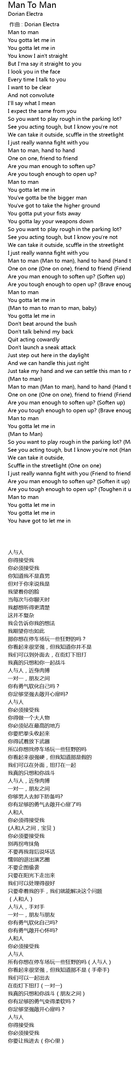 | [02:38.95] | Man to man |