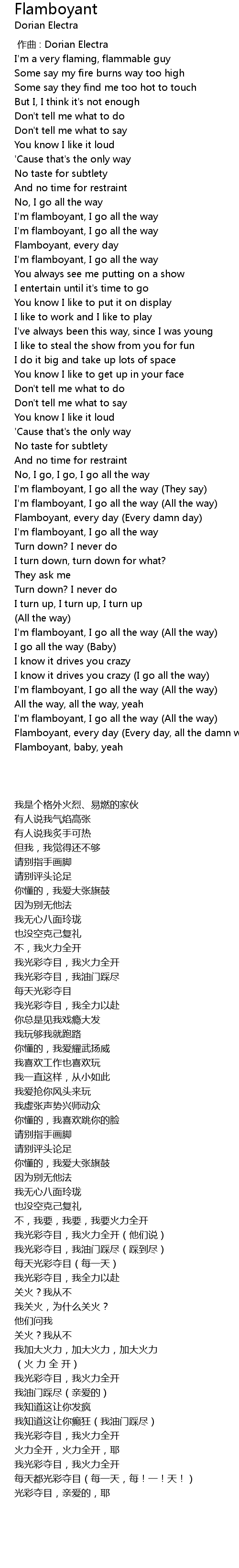 | [03:04.307] | Flamboyant, every day (Every day, all the damn way) |