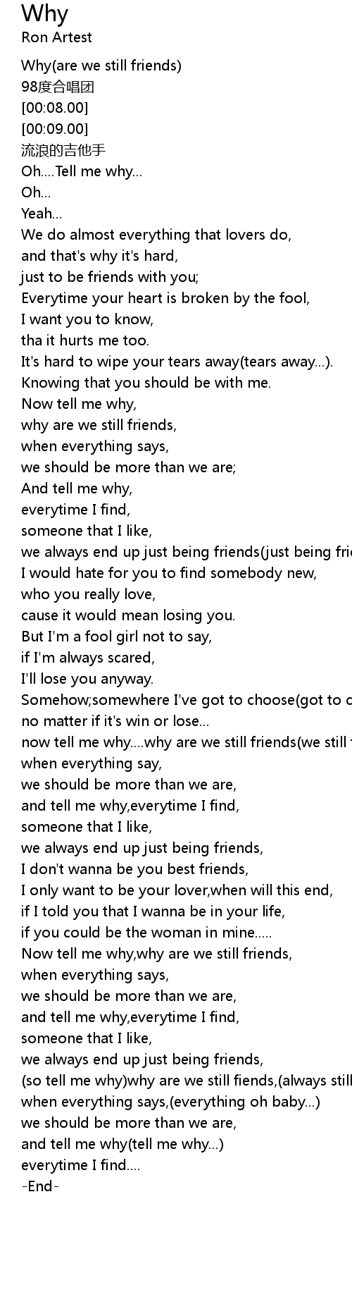 | [02:05.00] | now tell me why.... why are we still friends we still friends, |