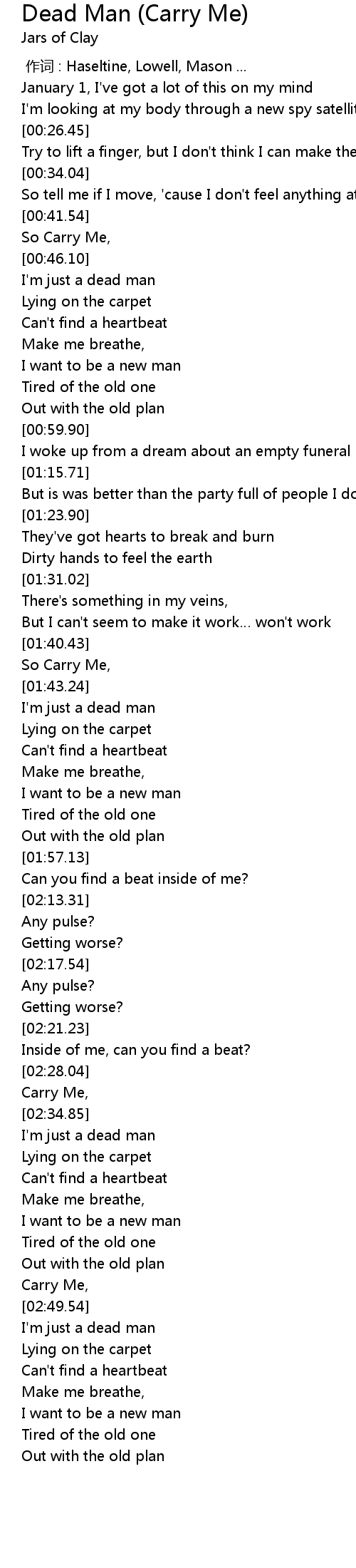 | [00:37.16] | So tell me if I move, ' cause I don' t feel anything at all |