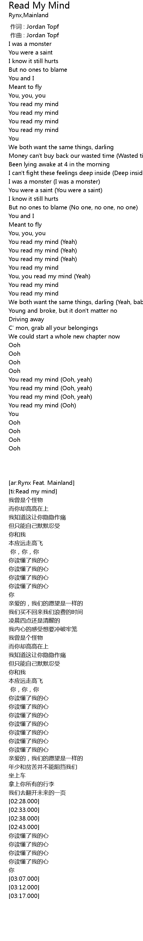 | [03:02.000] | You read my mind Ooh |