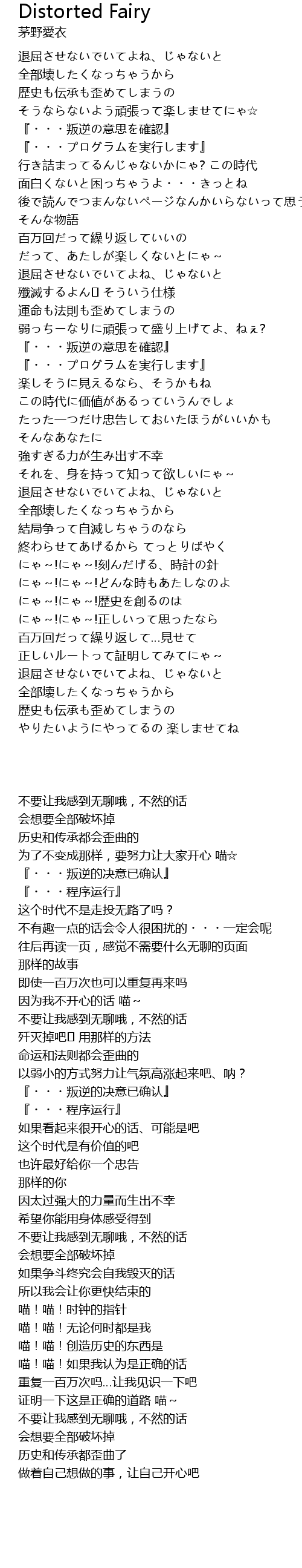 | 歌曲 | Distorted Fairy |